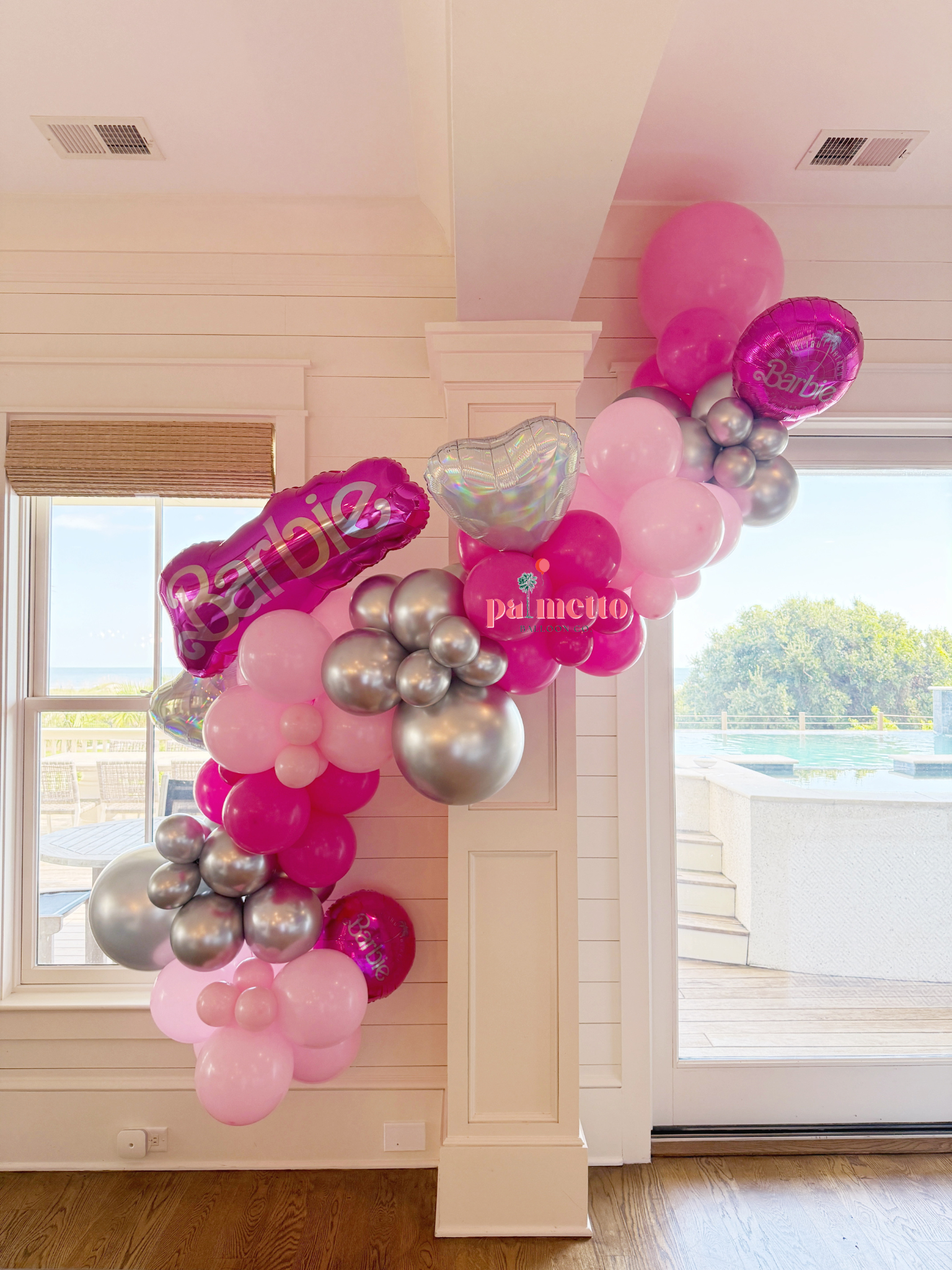 I am obviously partial, but I think a big statement balloon garland is the best way to maximize impact in your bachelorette party decorations — these are so cute over a doorway, by the stairs, on a mantle, or somewhere that serves as a central place to pose for photos throughout the weekend. Our most popular option is the 10ft latex tricolor garland — it is $272.50 after tax, delivery, and installation onsite in Mount Pleasant, downtown Charleston, Isle of Palms, or Sullivans Island (delivery charges may apply over 15 miles outside 29466). Shoot us over an inquiry form to secure your party balloons today!